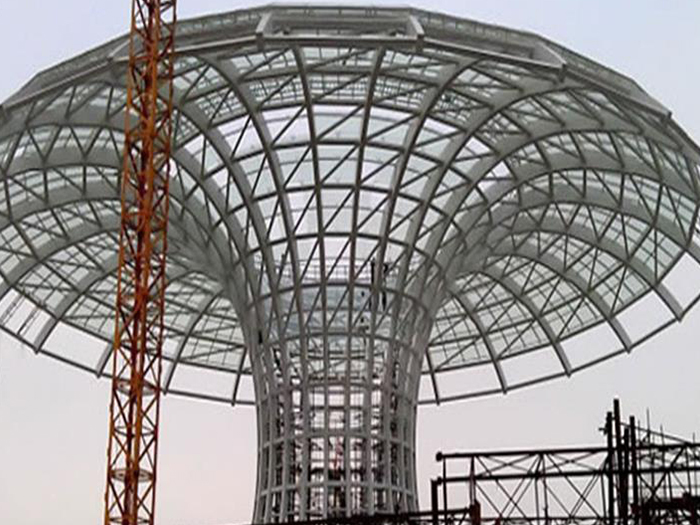 二、球形网架结构因其结构新颖,受力合理,自重轻、用钢量低等优点。如大型体育场馆球形安康螺栓球网架、公共场馆球形网架、电厂安康螺栓球网架、水泥工业球形网架、仓储物流球形网架、安康干煤棚工业球形网架、安康收费站安康加油站球形网架、展览中心、影剧院、商场、航站楼、候车厅、工厂安康车间、仓库、电视塔等球形螺栓球节点网架。国内球形网架结构主要分为:安康焊接球节点网架及螺栓球节点网架两种。螺栓球节点网架其构件工厂内加工量较大,现场安装便捷,适用于现场工期紧,安康施工条件、用电量受制约,网架形状复杂、安康杆件定位困难的异形结构。螺栓球节点球形网架系统基本由安康杆件、螺栓球、支撑支座等组成。按照节点形式可分为交叉安康桁架体系、四角锥体系、三角锥体系等。支撑方式多为固定支座支撑。对于大面积、大跨度及有特殊受力或伸缩要求的网架结构可采用橡胶支座、滑移支座、球铰支座等支撑形式,以满足结构自身的受力稳定、均衡,便于内力释放等设计要求。